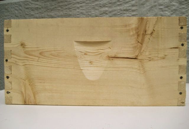 Boxes are open in the middle so that when they are stacked, bees can move between boxes without restriction.